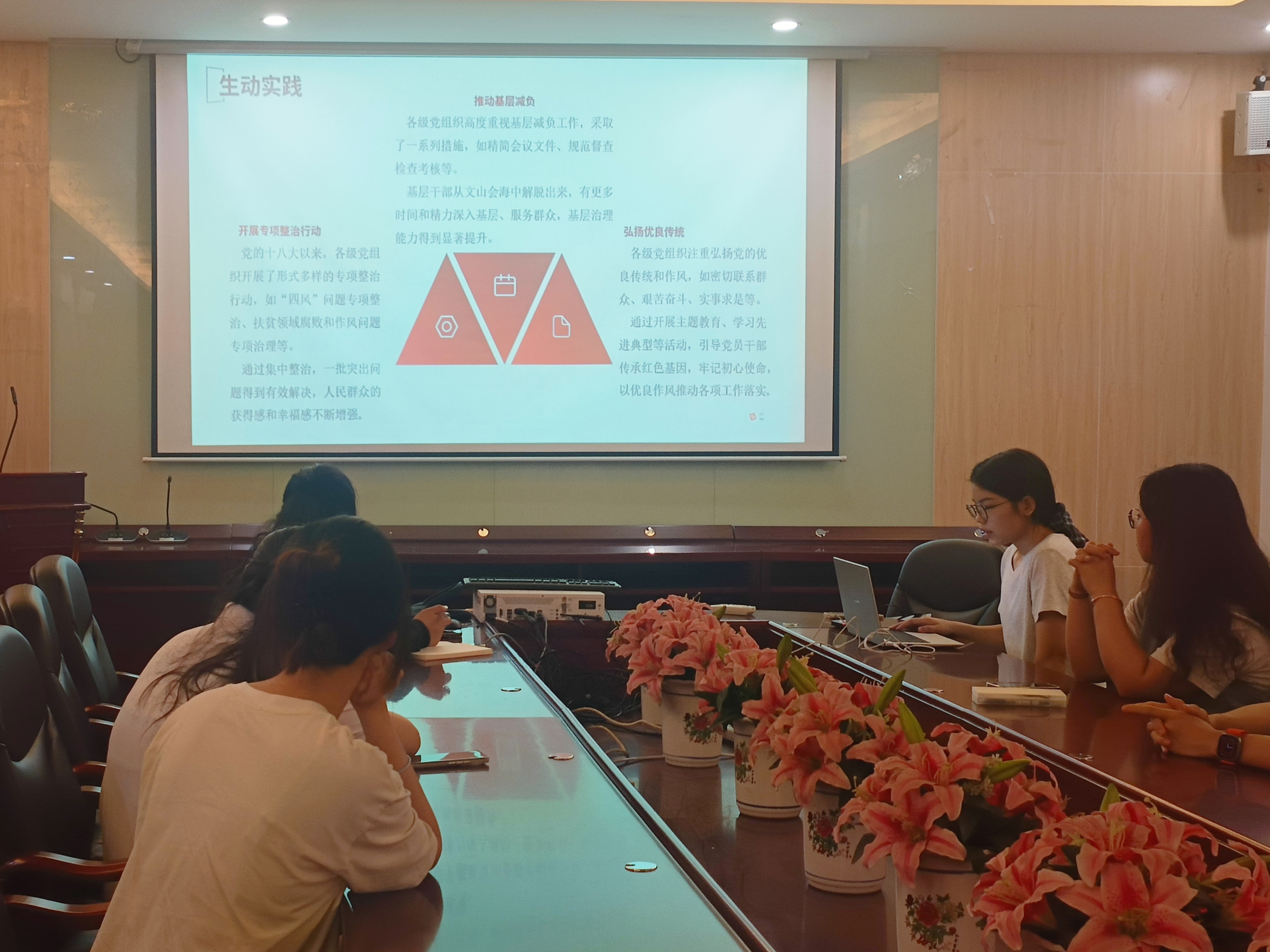 围绕本次会议主题,陈铭燕同志回顾了党的十八大以来作风建设的生动实践和宝贵经验,并根据作风建设面临的挑战阐述了应对举措。同时,她还分享了党中央以身作则、以上率下的典型事例,激励党员同志向先进学习,以实际行动践行中央八项规定精神,不断提升自身作风建设和纪律意识。