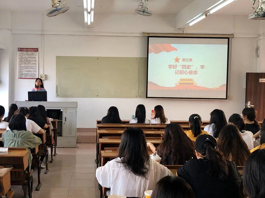 2020年初,习近平总书记在“不忘初心,牢记使命”主题教育总结大会首次提出学习党史、新中国史、改革开放史、社会主义发展史(四史)的概念。为加强19级学生对“四史”的了解学习,领会“四史”发展的精神内核,更好地引领新时代大学生的成长和发展,久久久免费19级学生党支部于11月20日在三教405开设“学习领会‘四史’精髓,争做新时代好青年”主题教育党课。参加本次党课的有19级学生党员、入党申请人、入党积极分子等,党课由19级学生党支部书记邓雪梅主讲。