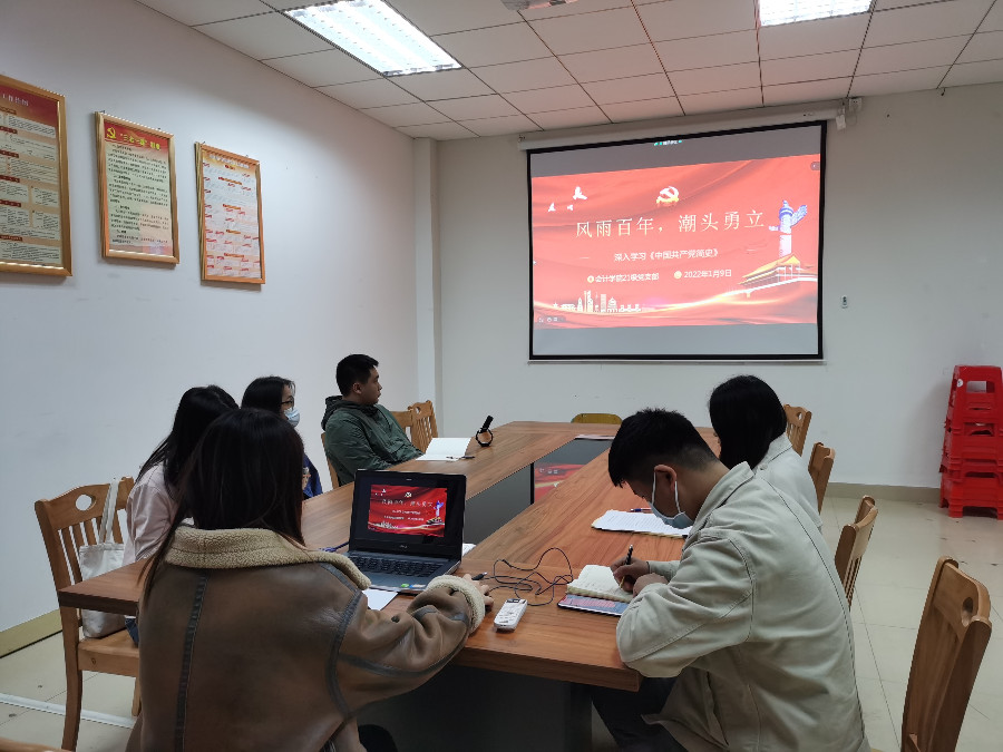 会议第一项,落实“第一议题”制度,进行《中国共产党简史》第十章中国特色社会主义进入新时代中坚持党的全面领导和提高党的建设质量的学习。由党员崔舒婷同志进行领读,过后各位党员同志交流学习心得。