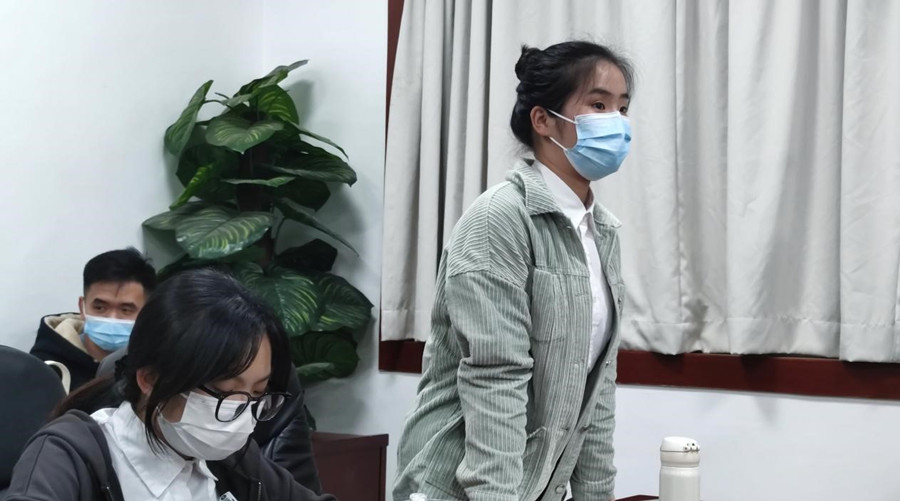 图2.邓欣玲同志带领全体党员回顾党的十九大历程