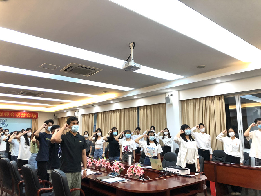 会上,由主持人宣读答辩流程,由1名预备党员及6名发展对象依次进行了答辩。他们分别就一年来的思想、学习、工作、生活等各方面的情况进行了汇报,同时,也对存在的问题和努力方向进行阐述。随后,预备党员和发展对象随机抽取有关党章、党规、时政方面的题目进行答辩。支部党员根据预备党员及发展对象在培养考察期内表现,以及现场的答辩情况进行自由发言,对申请转正的预备党员还有发展对象提出了意见和建议,申请人当即接受并表明了自己的态度,表示今后会改进不足,严格要求自己。经与会正式党员的一致表决,同意叶新妮同志的转正申请和叶宴廷等6名发展对象的入党申请。最后由党支部书记邓欣玲同志宣读最终决议结果并带领全体党员进行重温入党誓词和入党宣誓。