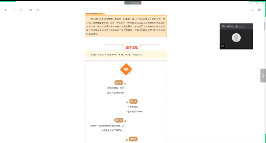 会上,范立坚同志首先说明了此次调整学校党组织隶属关系的重要意义以及此次毕业生党员组织关系转移的时间安排,并强调了此次转移工作,是贯彻落实上级文件和会议精神的具体举措;接着,其通过图表结合的形式,理顺党组织的管理关系,清晰地阐述了党组织和党员组织关系转移的具体流程,主要分为省内和省外两种方式,一是广东省内的党组织关系转接,全部在党务系统办理;二是转出到外省的党组织关系,由学生妹初拍在线观看部统一到省委教育工委办理转出手续;最后,范立坚同志再次强调毕业生党员组织关系转接的重要性和组织关系转出工作的时间节点,并就此次党组织和党员组织关系转移作了具体的工作部署。