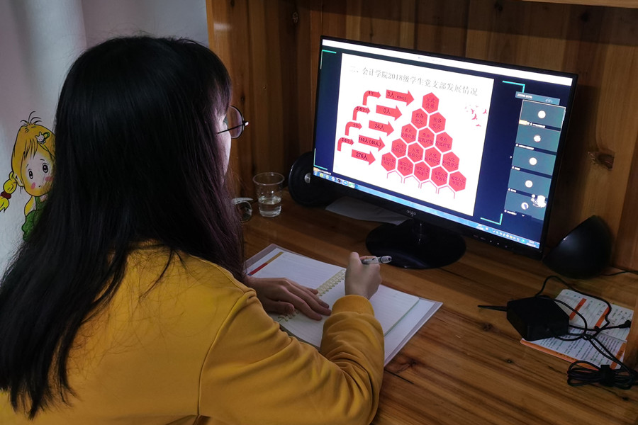 谢子昀向入党积极分子们强调了参加中国特色社会主义学习班的意义,不仅能够提高思想觉悟,还能够提高对党、对国家的了解和认识。随后,谢子昀老师介绍了18级学生党支部的发展情况,让同学们对入党流程有进一步的了解。会上,谢子昀重点分享了《习近平新时代中国特色社会主义思想三十讲》这本重要读物,并向同学们讲解了第三讲“实现中华民族伟大复兴是近代以来中华民族最伟大的梦想”。引导同学们分享抗击疫情背景下“90后”、“00后”学生们的防疫经历,结合习近平总书记给北京大学援鄂医疗队全体“90后”党员回信精神,使同学们领悟到“少年强,则国强”的内涵。