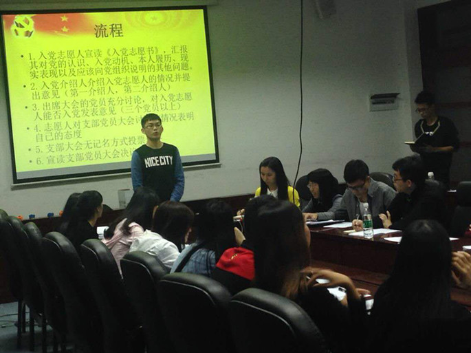 本次大会分为6个流程,首先由25位重点发展对象依次宣读《入党志愿书》,表达了自己对中国共产党的崇高敬意,向党靠拢的决心,并诚恳地做了自我评价,表示今后会扬长避短,改正自身的不足。紧接着入党介绍人分别就其情况提出意见,在场党员随后对其进行充分地讨论并发表意见,重点发展对象对讨论情况表明自已的态度,坚定入党的决心,并表示会努力改善不足,时刻以党员的身份严格要求自己。最后,经过无记名投票方式,25位重点发展均以全票通过顺利转为中国共产党预备党员,继续接受党组织的考察。