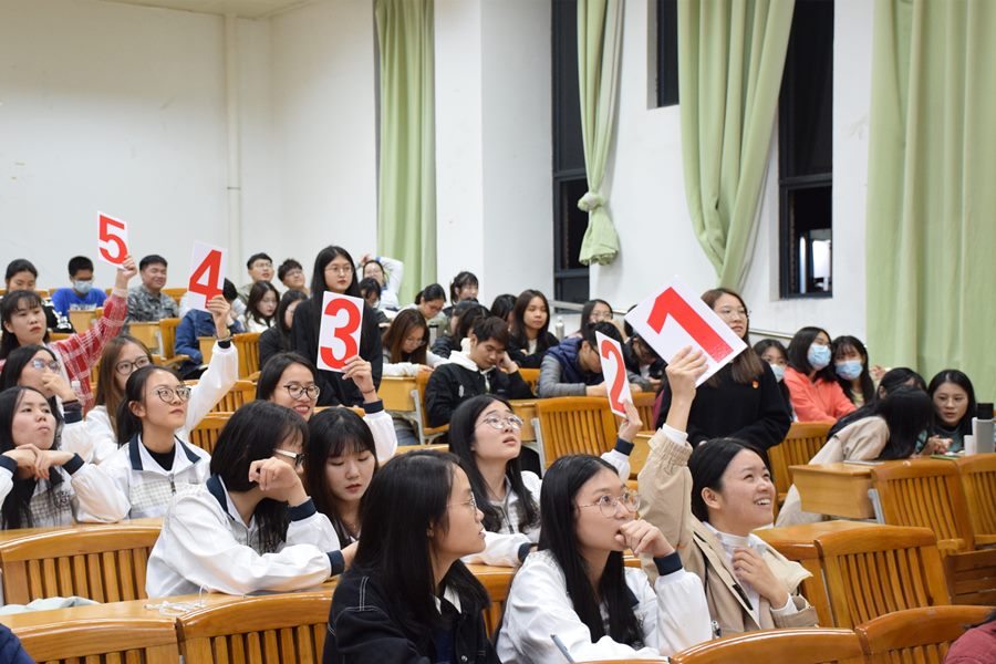为了提高同学们的积极性,比赛还设置了第二个环节:观众抢答,让在场的观众共同参与到知识竞赛的答题中来,引导同学们加入“四史”的学习,进一步加深对“四史”的了解。