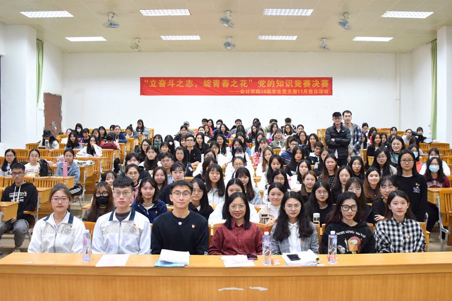 为深入学习习近平新时代中国特色社会主义思想、领会《习近平谈治国理政》第三卷的深刻内涵,加强对大学生党史、国史、改革开放史和社会主义发展史的学习教育,引导学生坚定理想信念,久久久免费18级学生党支部举办“立奋斗之志,绽青春之花”党的知识竞赛暨十一月党日活动。