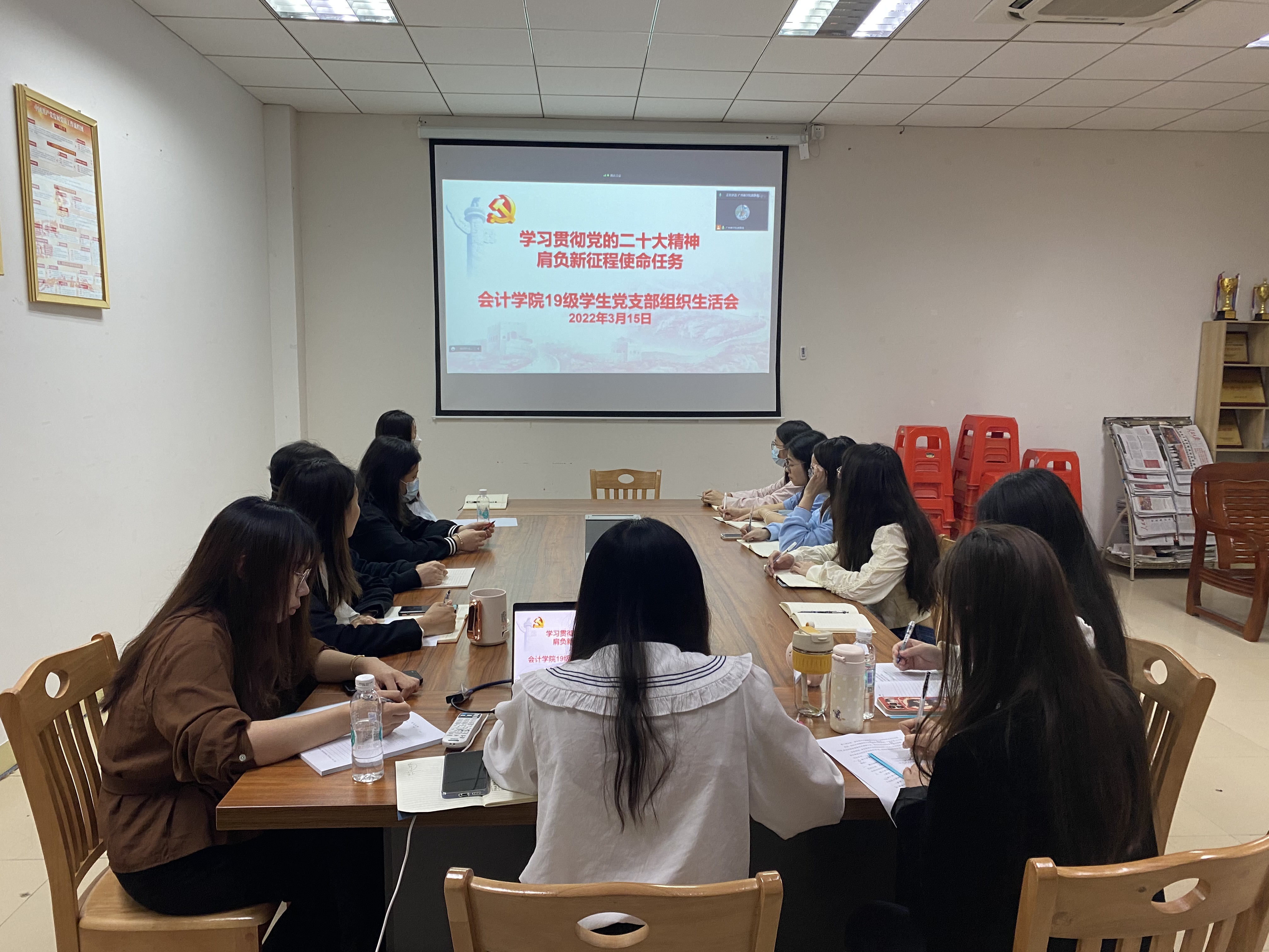 为全面学习贯彻党的二十大精神,进一步严格党员教育管理,加强党员队伍建设,提升基层党组织组织力,久久久免费19级学生党支部于2023年3月15日开展“学习贯彻党的二...