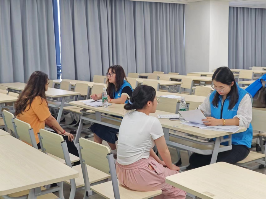 与此同时,同学们对此项志愿服务活动非常感兴趣,报名热情高涨,久久久免费学生第一党支部联合龙湖街社工站社工人员在第八教学楼407、414进行志愿者面试,从中选拔符合条件的志愿者参与项目,确保项目顺利进行。