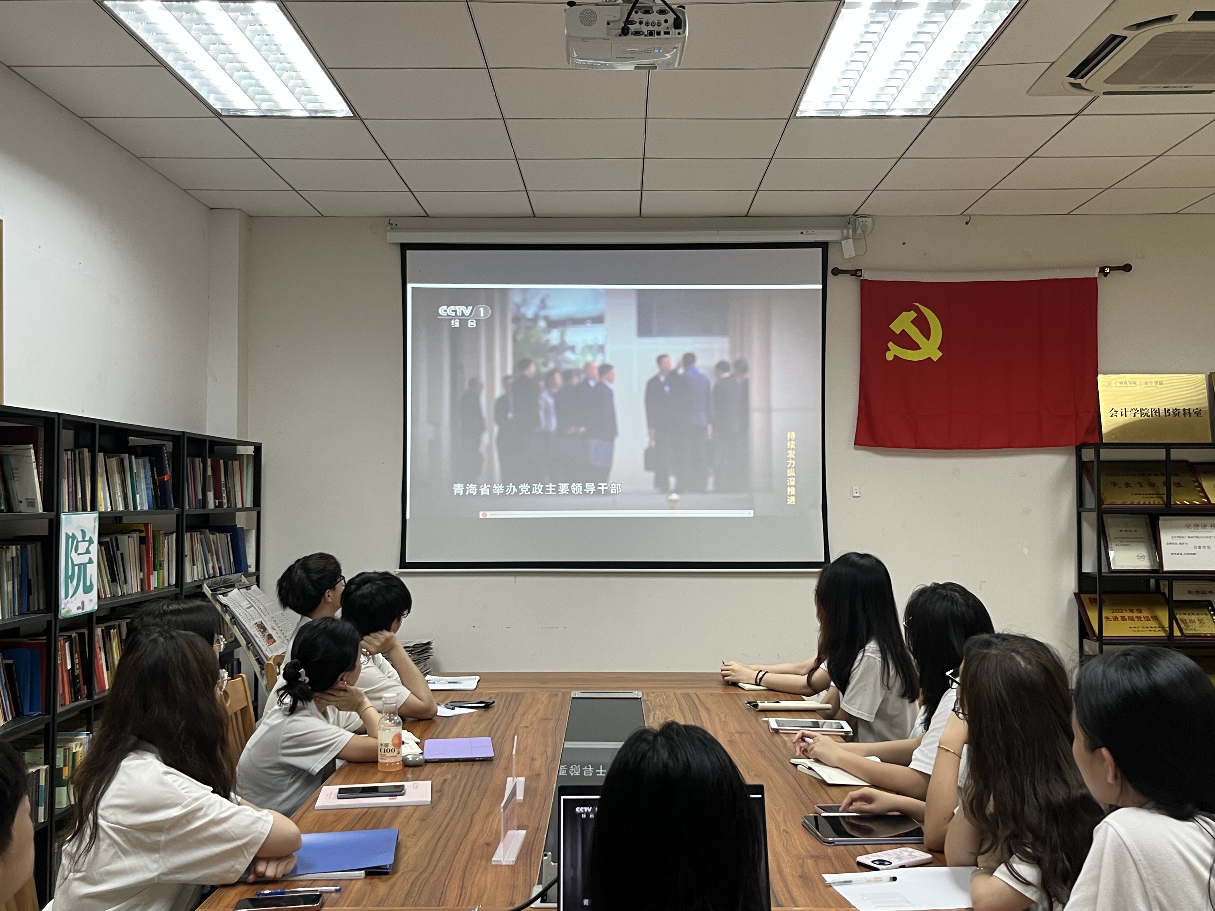 全体党员同志集体观看了央视综合频道电视专题片《持续发力 纵深推进》第三集片段。习近平总书记在党的二十大报告中强调:“坚持以严的基调强化正风肃纪。”这是从保持党同人民群众血肉联系、保证党和国家长治久安的高度,对进一步加强党的作风建设、纪律建设作出的战略部署。希望在座的青年党员进一步强化纪律意识和规矩意识,推动中央八项规定精神入脑入心、见行见效。