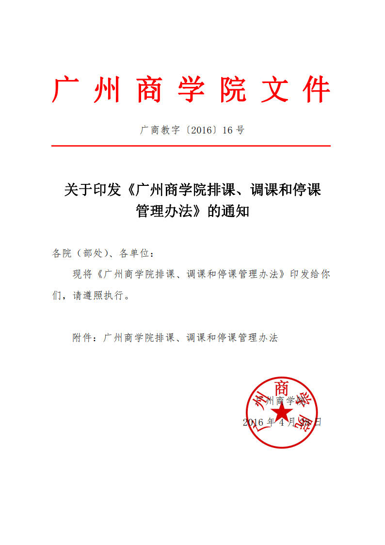 广商教字〔2016〕16号 广州商学院排课和调、停课管理办法