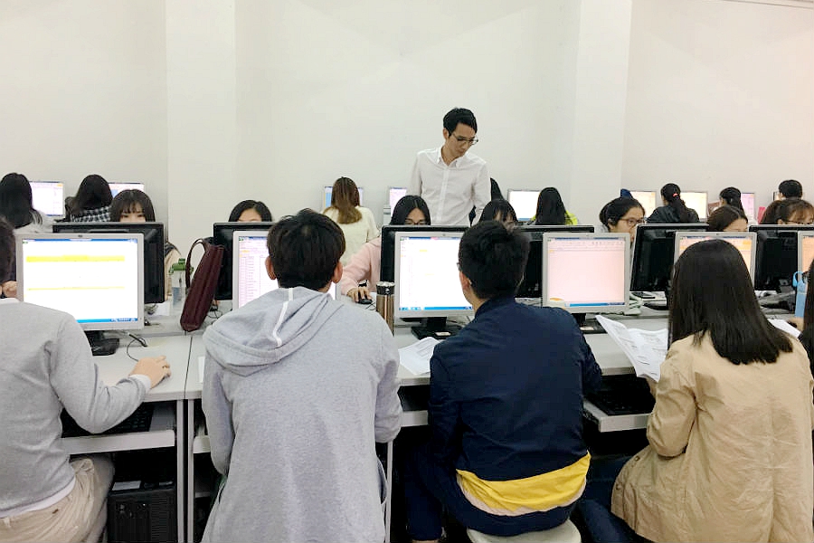 盛香林主讲课程《会计信息系统》,主要教学内容为应收款管理系统,学生需要掌握应收账款核销的操作处理及应注意的问题、应收票据贴现的操作处理及应注意问题等方面的内容。陈德祥主讲课程《Excel财务应用的实验》,主要教学内容为会计核算流程的应用,学生需要掌握Excel编制科目汇总表、期末余额表、数据透视表和VLOOKUP函数等的应用。两位老师主要利用任务驱动教学法进行教学,基本流程为“演示——下达任务——学生操作——教师归总疑难杂症——演示(共性问题)——学生操作”。教师演示时间和学生操作时间分配合理,注重学生动手能力培养,学生积极主动参与课堂,课堂气氛活跃。