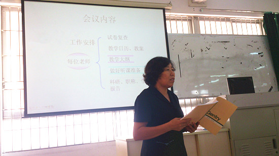 李锦堂通报了“我为学风建设添光彩”主题教育实践活动具体工作措施,师生共建“结对子”活动进展情况,希望各位教师多关心、支持学生工作。梁艳霞传达了学院行政例会会议精神和各项工作任务,袁翠珍传达了期中检查、期末考试等工作要求。