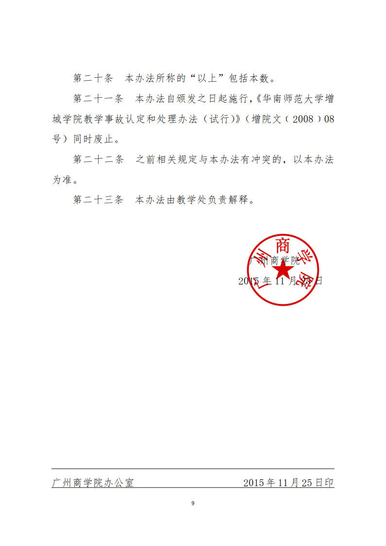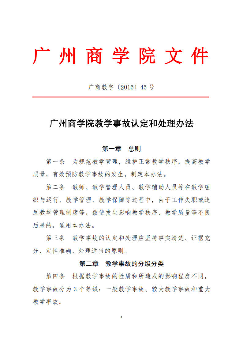 广商教字〔2015〕45号广州商学院教学事故认定和处理办法