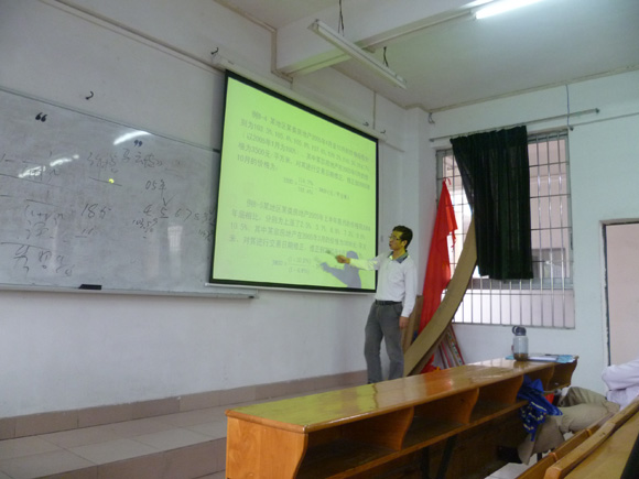首先,由彭文华老师主讲题为“市场途径及其方法在房地产评估中的应用”的课程。课堂一开始,彭老师就以毛泽东的着名诗词《沁园春·雪》的改编成《沁园春·房》吸引大家的注意力,引入当今房价过高的话题,课堂气氛顿时变得生动有趣。接着老师顺势把同学们带到理论教学中,同学们在参与课堂讨论的过程中也把专业知识理论记忆于脑海,这种理论与实际相结合的授课方式得到同学们的好评。