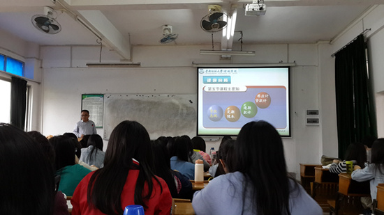 为促进教学手段改革,加强课件教学,会计系特邀杨玉国老师进行课件示范教学公开课。11月12日第五节,公开课在B201教师进行。会计系主任成慕杰教授、党总支书记李锦堂,财务管理教研室主任郭晋杰、会计教研室主任彭文华,会计系教师甘敏、李小梅、梁洁,辅导员李银霞听取了公开课。