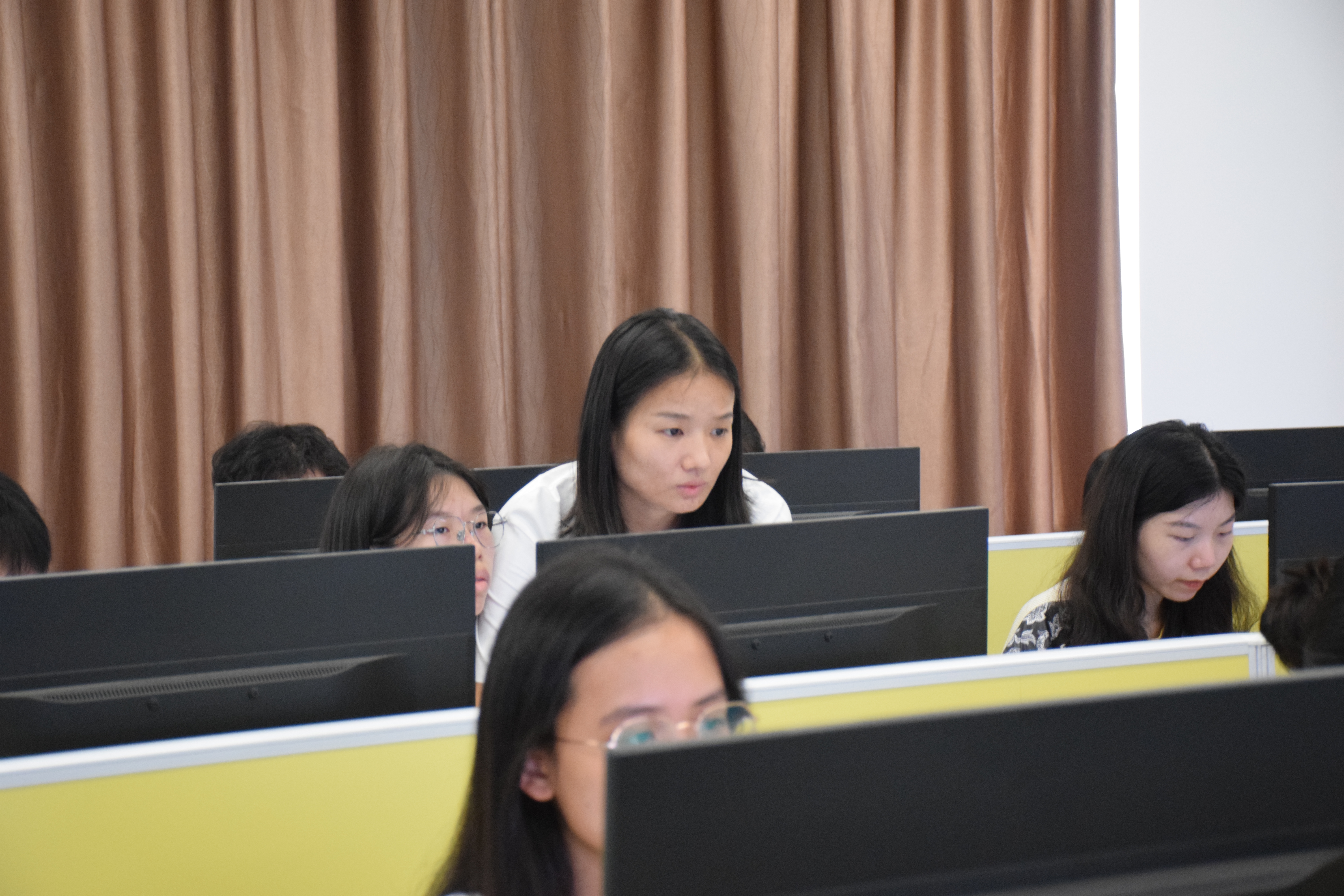 比赛前期,工作人员提前打开电脑,检查每台设备的运行情况,等待参赛同学进场,各参赛同学按照签到表有序入座,指导老师统一说明答题注意事项后,宣布比赛正式开始;比赛中期,学院各指导老师们查看学生答题情况,解决现场突发问题;比赛结束后,各参赛选手和指导老师们合影留恋。