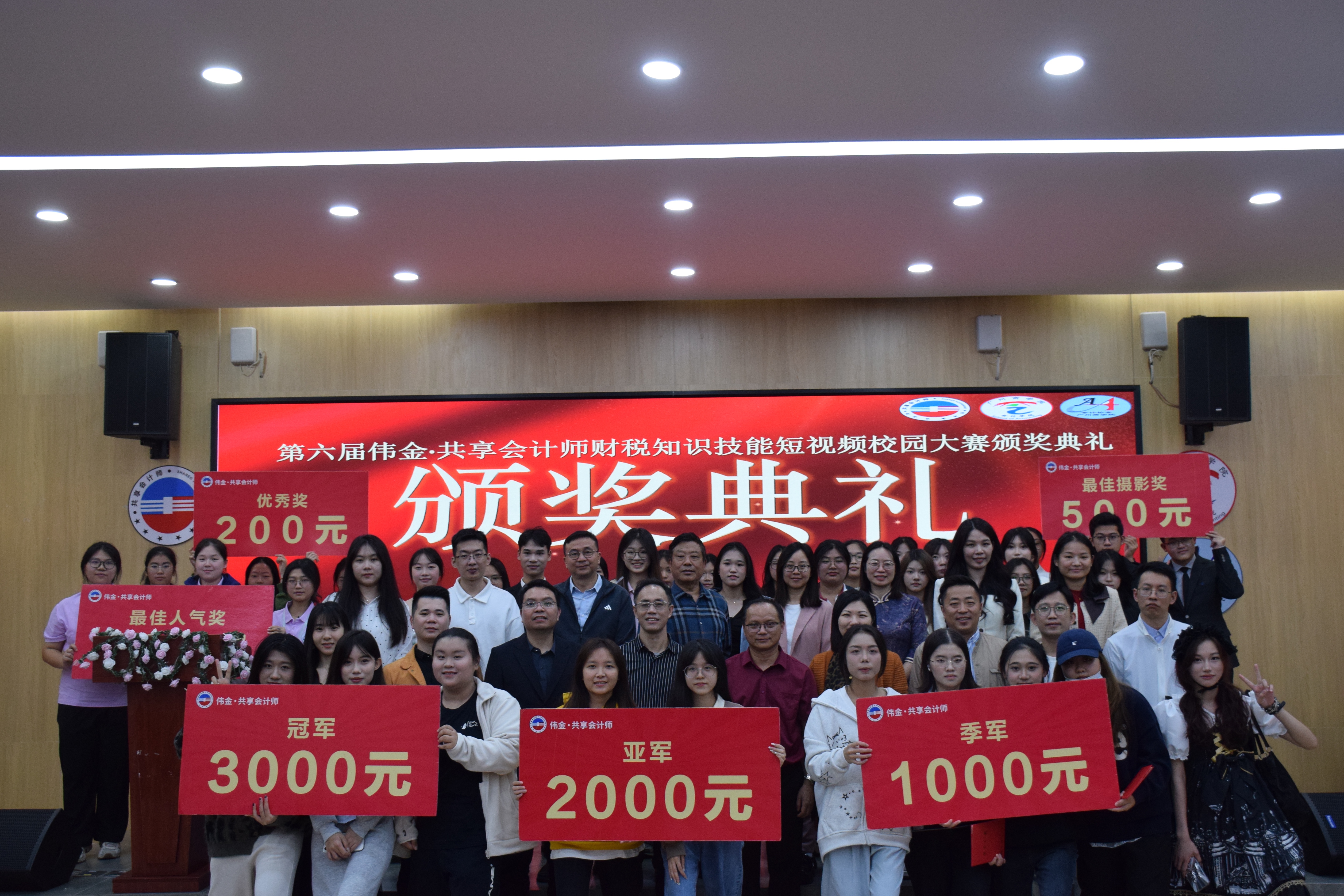11月22日,广州商学院久久久免费与伟金·共享会计师平台联合举办的第六届“伟金·共享会计师财税知识技能短视频校园大赛”颁奖典礼在四教第二报告厅隆重举行。本次活动旨在推动财税知识的普及与实践,通过创新形式激发学生的学习热情和创作潜能。伟金投资有限公司执行董事兼总经理、伟金·共享会计师平台创始人陈耿升先生,久久久免费副院长陈德余、谢伟峰,以及多位企业代表、教师代表、获奖学生代表和参会观众出席了活动。