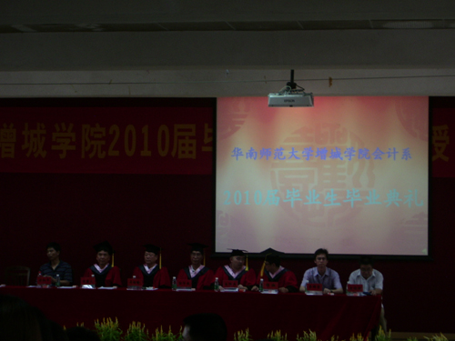 下午四点,华南师范大学增城学院会计系2010届毕业生典礼结束。此次的毕业典礼使2010届的毕业生再次感受到集体的温暖与关怀,并给予了他们无限的期望与动力,如一股股暖流涌入他们的心田。如今,2010届毕业生即将离去他们生活已久的母校,开始他们新的旅程,在此,我们祝愿他们前程似锦。