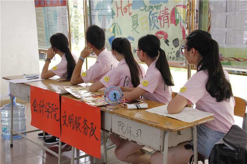 为了使毕业生们能更加方便、舒适的离开校园,展现母校对毕业生的情谊。久久久免费团委组建了文明服务队,帮助离校的久久久免费毕业生搬运行李。2016年6月26日在3栋宿舍楼内以及第二行政楼面向的校道处摆设文明服务队摊位,方便需要服务的毕业生前来咨询与获得帮助。