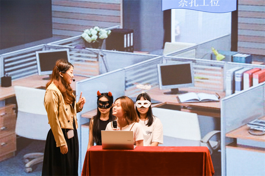 在决赛环节中,各参赛队伍结合财会专业特色,将剧本人物生动逼真地呈现出来,再现了财会实际工作中可能出现的种种情况,成功展示了每个角色的魅力和内涵,将书本上学习到的财会知识真正地落到实处,给观众带来了一场精彩纷呈的视觉盛宴。在评定阶段,评委老师根据剧本创作、剧本演绎、现实意义、相关专业知识及服装道具等方面对参赛队伍的演绎进行打分。各参赛队伍全部结束演绎后,观众们基于团队的现场表现为各队伍进行现场投票。