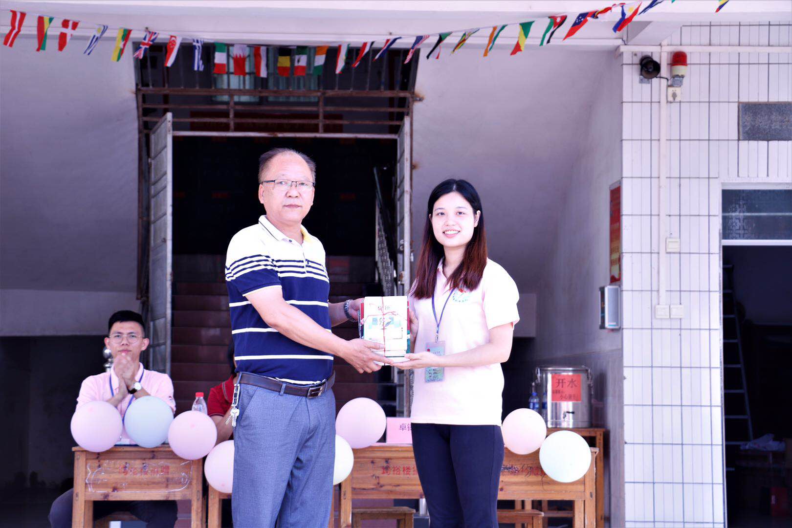 其后,会梦起航服务队指导老师廖秀娟发表讲话,并向学校赠送书籍、体育器材一批,也给同学们赠送了文具套装、水杯。她首先代表会梦起航服务队对三下乡开学典礼的顺利开展表示热烈的祝贺,并对在场的嘉宾、学生和家长表示诚挚欢迎。同时,她也提到各位青年志愿者需要将自身成长和国家需要结合起来,努力为人民办事,自觉践行求真、立信、笃行的校训,相信通过大家的奋斗,我们的未来必定充满希望。