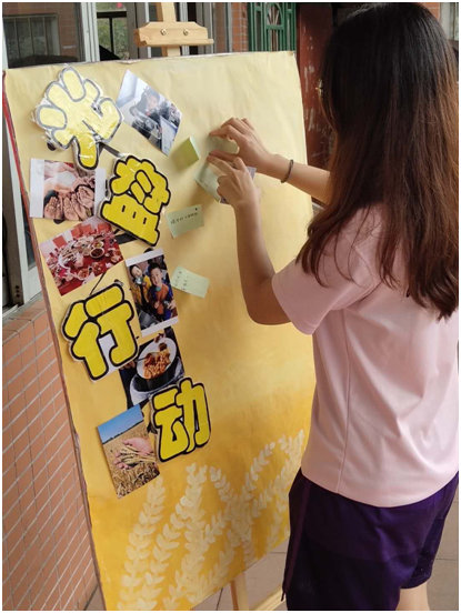 而其中光盘集章活动最吸引同学们,多数同学在饭堂工作人员领取集章用的小卡片,并在横幅上签字表明支持光盘行动,然后以自己的实际行动在吃完饭之后向工作人员展示自己“光盘”的成果。同时也有许多广商学子在吃完饭后,用便利贴留下自己对光盘行动的感想,以号召更多的同学参与到光盘行动当中。在此次活动结束后,参加光盘集章活动的同学还可以通过集满6个印章参与抽奖。