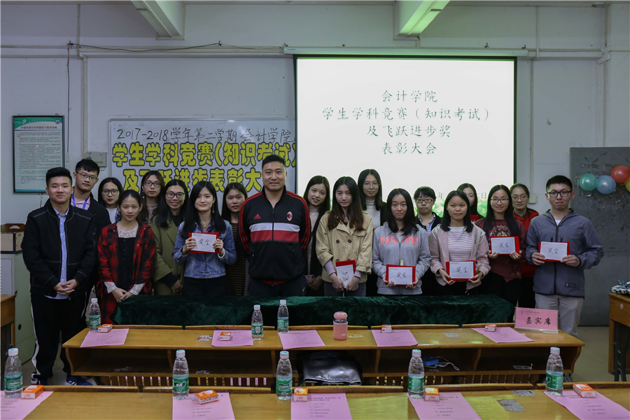 大会伊始,首先进入了颁奖环节,2017年6月英语四级考试中成绩排名前三名的同学分别是刘诗明、杨琳菁和黄丽萍。英语六级成绩排名前三名分别是刘柔、陈贝妍和易绚琳;获得省级以上学科竞赛(个人与团体)及其他竞赛、在公开刊物上发表学术论文奖,他们分别是蔡秀君,黄亮,赖俊如、练桂媚、余晓曼团队,林小冰等学子;14级、15级、16级三个年级中获得飞跃进步奖的同学分别是陈康银,陈晓萍,刘贵宾等92位学子。