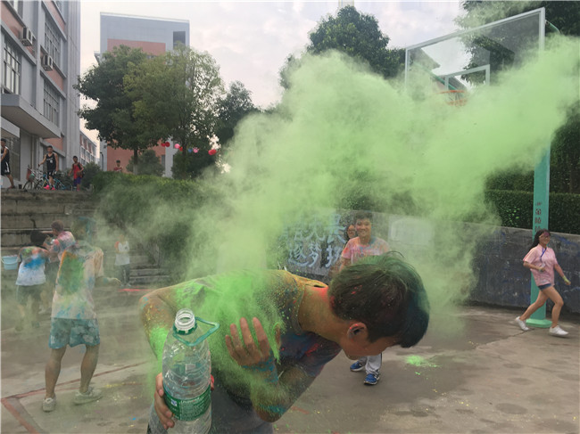 活动的高潮部分为撒粉环节,参赛者到达每个彩粉站之际都会与工作人员进行一场“彩粉大战”。为了躲避彩粉的袭击,大家都在校道内奔跑,宛如上演了一部惊心动魄的“枪击战”。缤纷的色彩给每个参赛者带去了祝福和快乐的体验,青春的活力在他们奔跑的身影上尽情绽放。