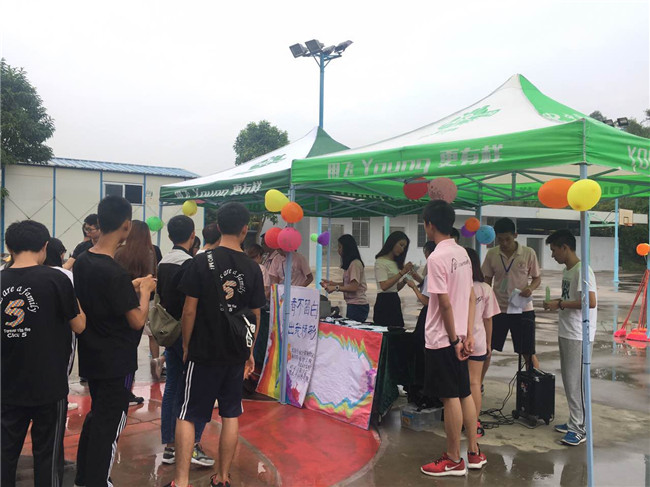 下午三点,共有30多名参赛者在广商篮球场集合。尽管天公不作美,突如其来的云雨使活动推迟了15分钟,但参赛者的热情丝毫未减。本次活动把参赛者分为两组,第一组的参赛者在三名工作人员的带领下率先开跑,其他参赛者则在球场进行关卡小游戏。