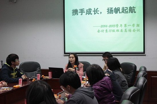 2014年12月30日晚上7:00,由会计系13级级委主办的“携手成长,扬帆起航”2014-2015年度第一学期级委班委工作总结座谈会在第二行政楼D308召开。出席本次座谈会的有会计系13级辅导员陈秀纯老师,级委、班委、普通同学代表和党支部代表共54位同学参加。