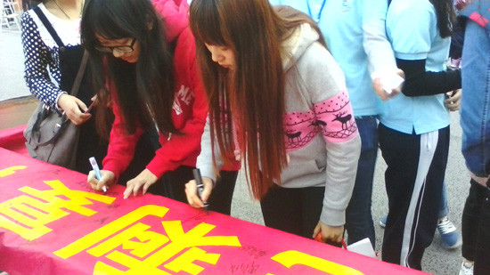 “光盘”是每一个人都应做到的事。在活动期间,每天中午由学生会干事在同乐园二楼进行摆摊宣传和盖章工作,只是拿着空盘到饭堂回收点,便可以宣传处盖章。在本次活动中我们采用集章的方式来调动同学们参与活动的热情,由工作人员发放专门的集章卡片,同学们只要在卡片上集齐七个章便可换取精美奖品。我们开创了新的宣传方式——转发活动链接并在朋友圈集赞,集够相应的赞数也能获取一份小礼品。当我们向同学们宣传此次行动时,他们都会驻足倾听且表示支持,并有很多同学都能够主动地参与到此次的光盘行动。朋友圈集赞的方式提升了同学们对此次行动的积极性,同时也扩大了此次行动的影响力。同时,于3月24日17时在舞蹈室旁的校道举行了光盘签名活动,使更多同学参与到此次活动中,留下自己的签名,书写光盘的决心。