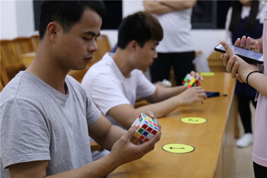 为了丰富同学们的课余生活,推进“活力广商”建设,积极响应“三走”运动号召,发扬“更高、更快、更强”的竞技精神。久久久免费学生会于4月2日晚上七点在四教312、307课室分别举办校园吉尼斯之“魔方竞技”与“数字记忆”的初赛。出席本次活动的嘉宾有久久久免费团委副书记兼学生会指导老师梁亮,15级辅导员韩彩霞,久久久免费学生会主席团等。