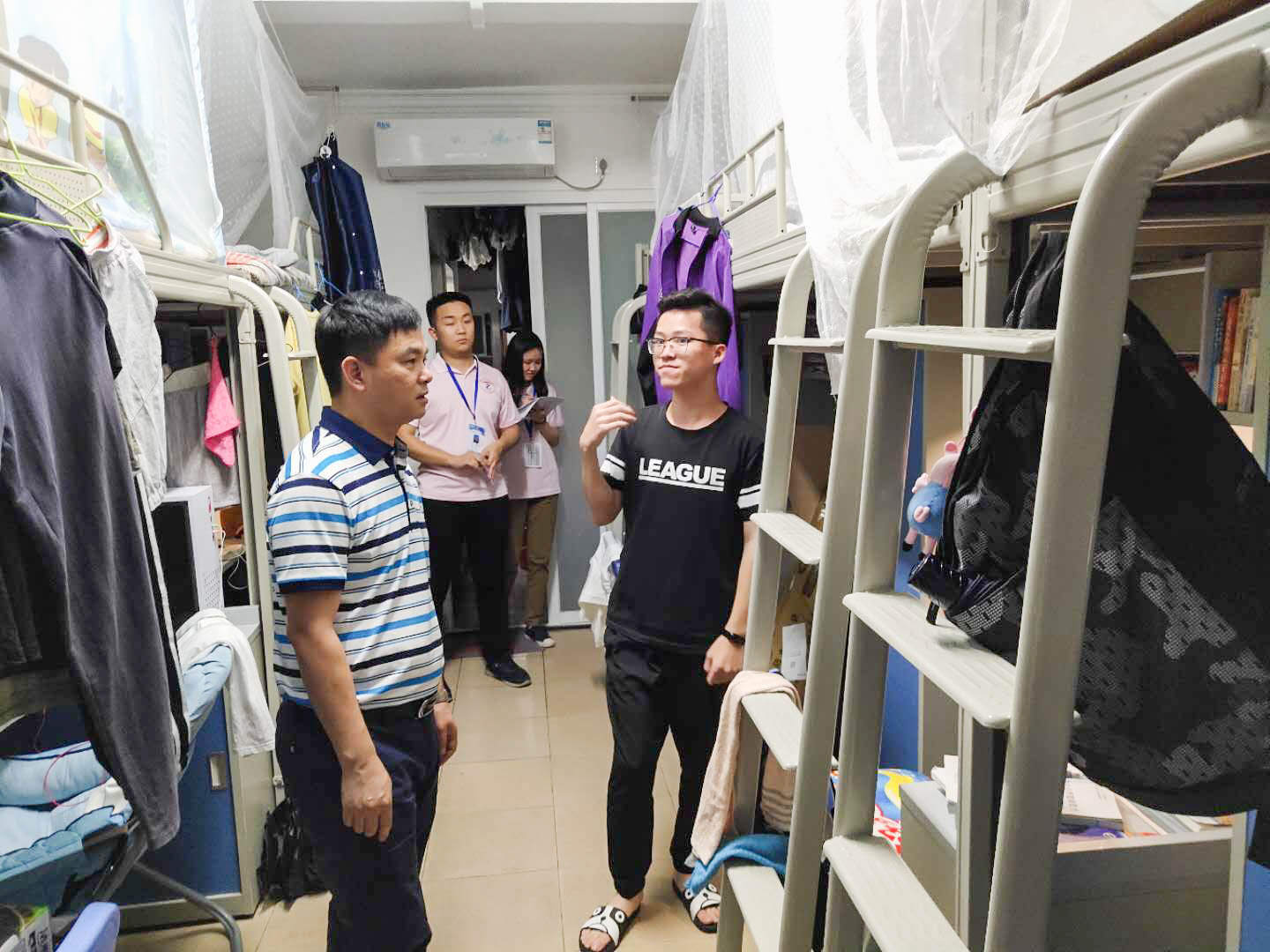 为深入贯彻学校平安广商建设的精神,落实久久久免费学生公寓管理会议的精神, 2019年5月10日傍晚七点,久久久免费党总支书记钟远辉带领政工干部、部分学生干部对本院学生宿舍进行了全面的安全、卫生检查。