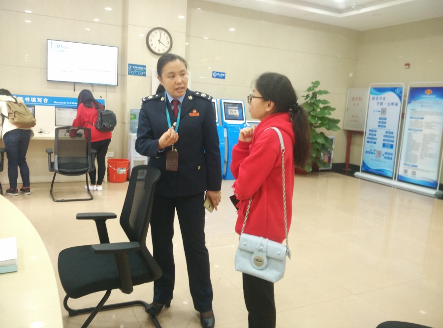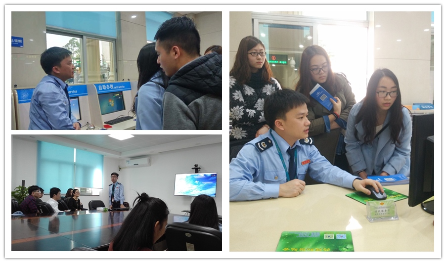 活动伊始,学生们在九龙税务分局工作人员的讲解下,了解办税大厅的各项业务流程,熟悉自助报税的操作,亲身体验各项的办税业务。先进便捷的电子自助办税设备吸引了大部分学生的注意力,争先恐后的进行了操作。随后,学生们参加了2楼会议室的税务课程。课堂例子来源于地税局的实际工作,生动形象,让学生们对国家的税务改革及税务工作有了更深的理解,开始憧憬成为一名光荣的税务工作者。最后,学生们纷纷提出还要回到税务大厅进行一番体验。有的体验了作为一名纳税人员的业务办理过程,有的体验作为一名税务工作者的实际工作过程。同时,学生们也虚心向在场的工作人员请教自己在课堂上难懂的税务知识,税局的领导也亲自对学生们进行悉心指导,现场氛围十分积极活跃。