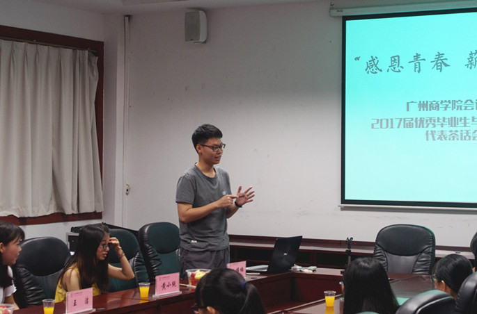 为了全面开展毕业生离校系列活动,增强会计学子的就业率,针对当前的毕业生就业、考研、考公务员等情况,在院领导的安排布署下于2017年6月23日上午9:00在二政308举办了“感恩青春薪水相传”优秀毕业生代表与低年级学生代表茶话会,出席本次茶话会的优秀毕业生代表有周展鸿,谭敏英、王洁、黄小纯、王梓楠以及低年级学生代表若干。
