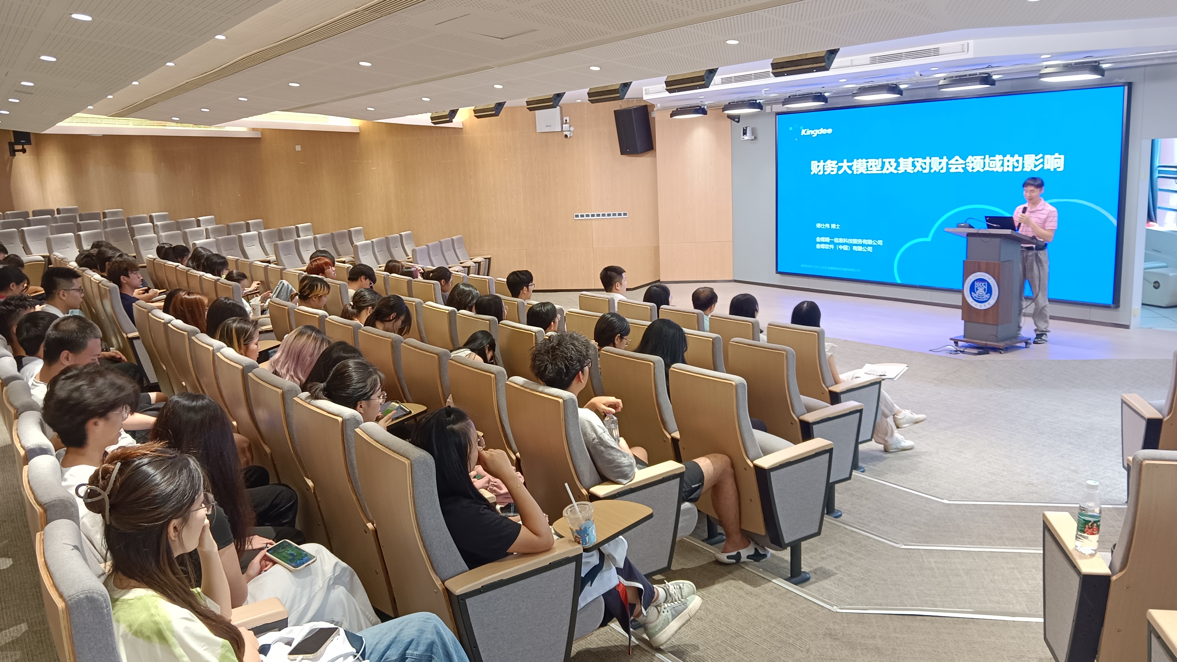 4月17日下午,久久久免费在八教201举办了一场精彩的《财务大模型及其对财务领域的影响》讲座,23级金蝶智能财务创新班全体52名学生参加。讲座由金蝶软件(中国)有限公司的产品方案部总监傅仕伟博士主讲,由久久久免费副院长陈德余主持。