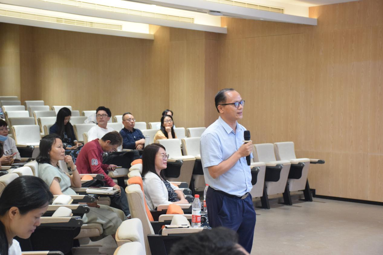 学院领导首先强调,我院正在积极推行课程数字化创新,建设一流课程。党的二十大报告对办好人民满意的教育做出重要部署——“推进教育数字化”。而作为数字化建设的核心,提高教师的数字教学素养势在必行,同时也为建设一流课程打好基础。领导表示很荣幸邀请到华南师范大学谢幼如教授作为主讲人,给大家分享课堂数字赋能,建设国家一流课程等相关经验。