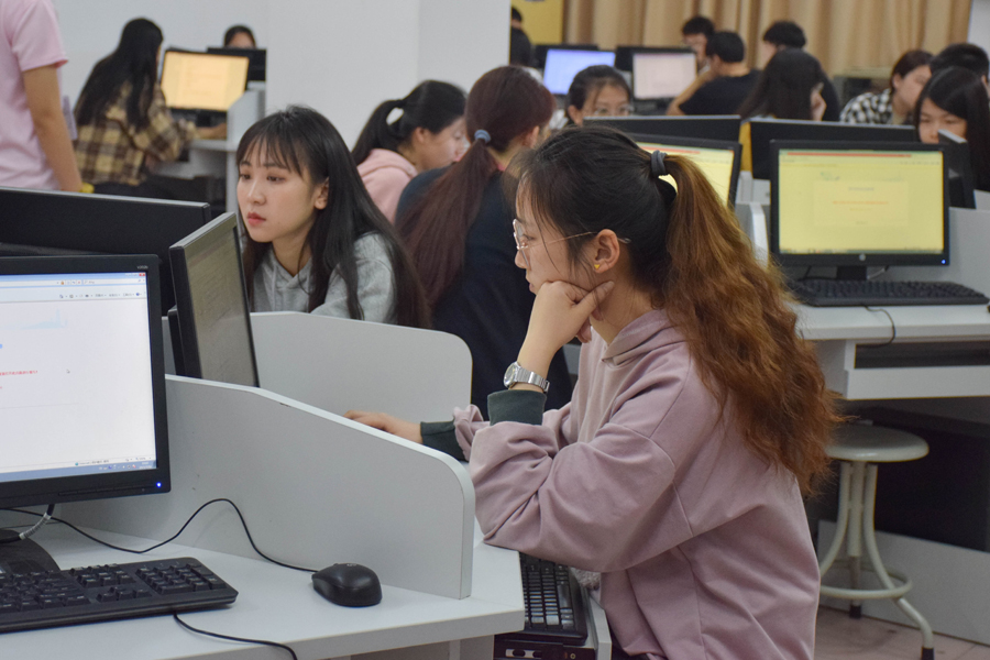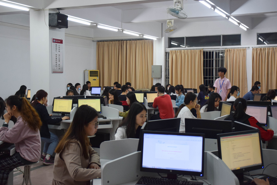 经过班赛的答题竞争,每班选出一名代表参加竞赛,共有65人。开赛的前五分钟,主持人首先对前来参赛的选手们表示欢迎与祝贺,紧接着宣读了考场的要求,本次竞赛采用电脑机房线下答题的方式进行,随后考场工作人员发送问卷星至选手电脑作答。