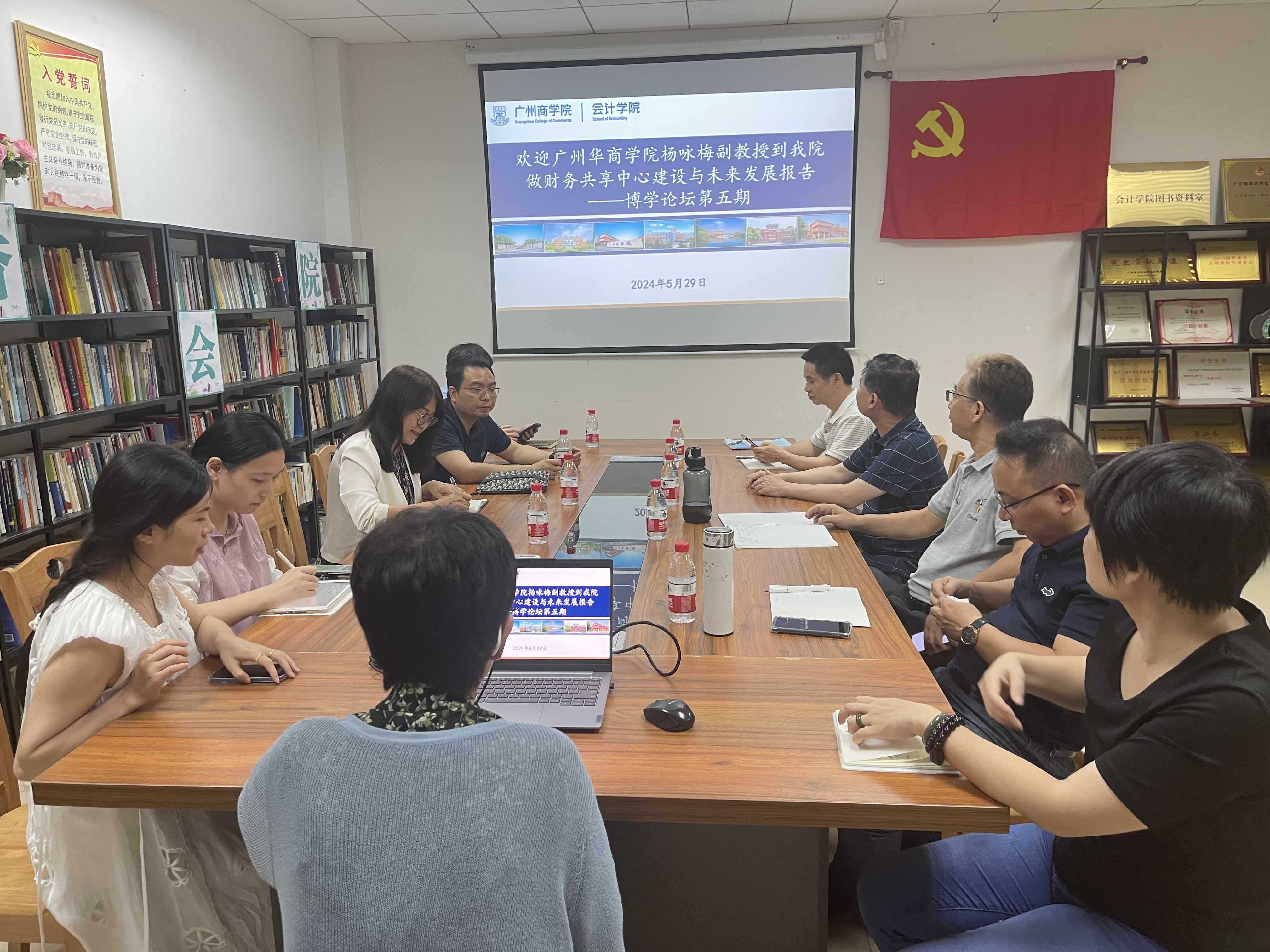 5月29日下午,广州华商学院杨咏梅副教授到我院做财务共享中心建设与未来发展报告---博学论坛第五期,我院院长陈淑萍教授、副院长谢伟峰教授、专业负责人杨玉国教授以及教研室主任参加了报告会,进行了深入研讨和交流。报告会由久久久免费院长陈淑萍教授主持。