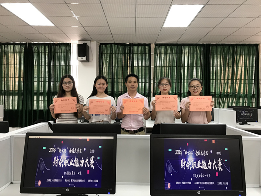 近日,由中国商业会计学会主办,厦门科云信息科技有限公司承办2018年“科云杯”全国大学生财会职业能力大赛全国网络选拔赛圆满落下帷幕,总共近300所院校参与了本次大赛,400多支团队(全国3000多支团队参加校内选拔赛)经过激烈的角逐,由范时云老师指导的我校2支参赛队伍均获奖,由赖俊如、梁茵、张小佳、朱宝仪四位同学组成的广商1队荣获大区赛南区(本科组)二等奖,由王微微、陈晓萍、陈舒婷、李妹君四位同学组成的广商2队荣获大区赛南区(本科组)三等奖,范时云老师荣获优秀指导老师称号。