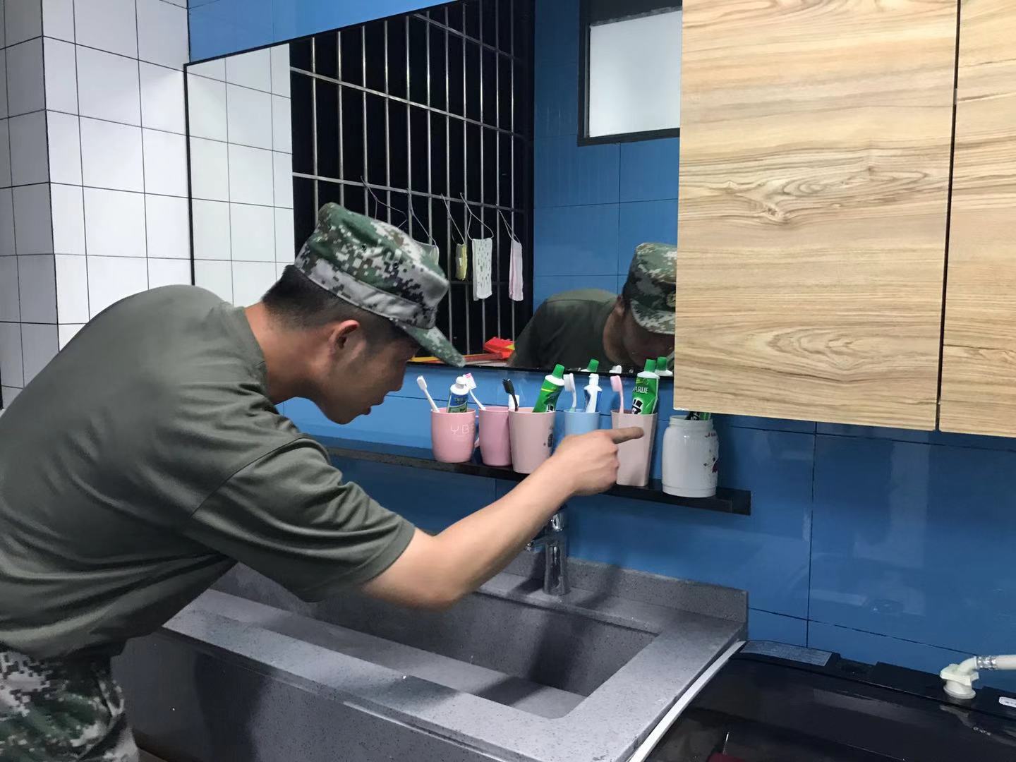 教官指导学生整理内务