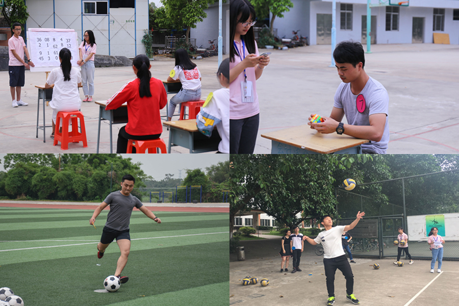 比赛正式开始,首先进行的项目是数字记忆,足球九宫格和排球发球,这两个项目分别在足球场和排球场举行。数字记忆考验同学们的眼力和脑力,进入决赛的选手们实力相当,真可谓是一场智者的头脑风暴,令人激动不已。最终荣获数字记忆第一名的为陈润发、第二名为李媛、第三名为刘诗明。足球与排球的主赛场更是一遍欢呼雀跃,每个选手都以自己全部实力瞄准高分点进行攻破,排球发球比赛向我们展现了力量美,足球九宫格比赛向我们展现了步伐美,两者结合便是运动美。激烈比赛过后,排球女子组的庞小茵高分夺冠,第二名、第三名分别为陈烁丽、高梓桦,排球男子组的洪耿彬高分夺冠、第二名、第三名分别为江豪、胡旭锋;荣获足球九宫格比赛男子组第一名、第二名、第三名分别为陈昊祥、蔡永建、李文杰,荣获足球九宫格比赛女子组的第一名、第二名、第三名分别为刘维敏、李芊桦、陈绮华。三类比赛进行完毕后,紧接着是魔方竞技的决赛,魔方打乱之后,工作人员宣布比赛开始,在参赛者双手变幻莫测地转动下, 魔方似乎不再是一种玩具而是作为一项训练手眼协调。一场思维能力的考验愈演愈烈,最终由王云亮以26.16秒的成绩夺冠,第二名第三名分别为张锦祥、方美斐。魔方竞技后是激情四溢的极速三分球,三分篮球不仅是对参赛者技术的考验,更是对选手心理的考验。一个进球伴随着战鼓隆声与欢呼,现场的气氛热烈,观众更是激动不已。最终荣获极速三分球比赛男子组第一名、第二名、第三名分别为黄心旭、黄启朋、曾维兵;荣获极速三分球比赛女子组的第一名、第二名、第三名分别为黄铭君、李嘉泳、彭婷。