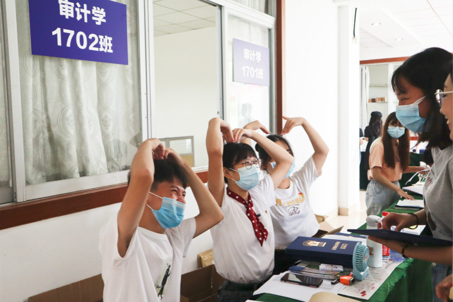 在二政入口处,安排志愿者对进入的毕业生进行体温测量,做好疫情防控工作;在领取毕业证现场,每个班级安排两名党员志愿者,按班级派发毕业证书等,党员志愿者们以认真细致的态度为毕业生核对资料,办理离校手续,整个过程井然有序,党员志愿者们还积极主动为前来领取毕业证书的毕业生进行引导,提供相关服务,暖心为毕业的师兄师姐送行,祝愿他们毕业快乐,前程似锦!