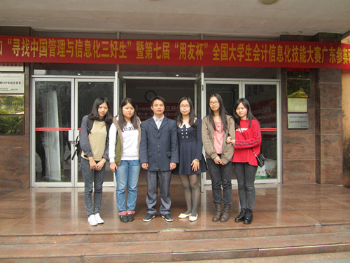 由工业和信息化部人才交流中心和用友新道科技有限公司主办,教育部全国高等学校学生信息咨询与就业指导中心支持,用友新道科技有限公司承办的第七届“用友杯”全国大学生会计信息化技能大赛广东赛区11月23日在广州城市职业学院(海珠校区)举行。经过选拔、培训,我系派出指导老师范时云,学生杨建敏、简杏利、谢洁莲、金珊、麦健扬等六名师生组成代表队参加了本次大赛。代表队在一天的激烈角逐中,发挥出色,最终荣获了省赛本科组第五名。