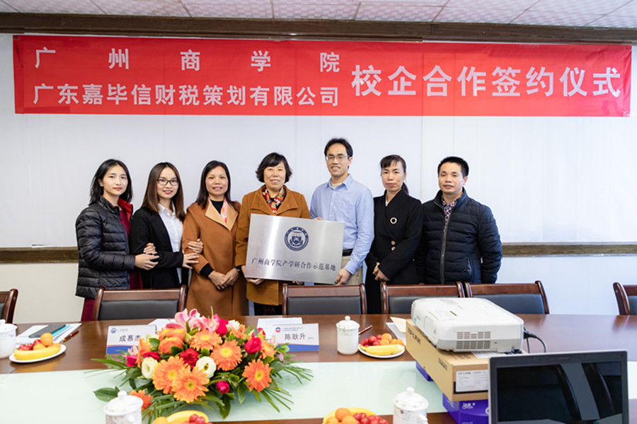 12月11日下午,久久久免费院长成慕杰教授、副院长刘瑞华、实践教研室主任范时云走访了广东嘉毕信财税策划有限公司,陈耿升董事长热情接待了成慕杰一行,双方就实践教学合作进行了深入交流和洽谈,达成一致意向,签约挂牌。