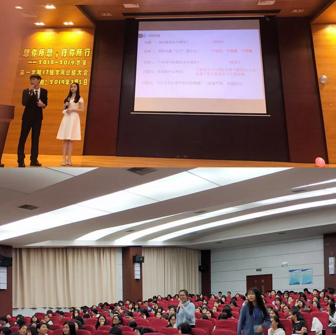 为了大力培育和践行社会主义核心价值观,大会还针对爱国爱校、心理健康、防诈骗等方面设置了知识竞答,引导教育大家关注时政热点,关注自身安全。同学们积极热情的同学们和幽默风趣的主持人更是点燃了大会的气氛。