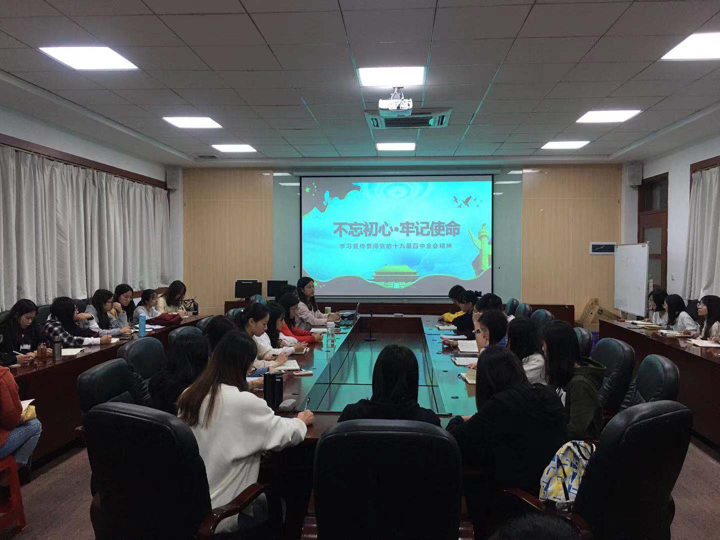 11月19日晚,久久久免费17级学生党支部组织全体党员在二政308会议室组织开展党的十九届四中全会专题学习研讨会。支部通过视频学习、交流研讨等形式,认真学习贯彻落实十九届四中全会精神,结合“不忘初心、牢记使命”主题教育,努力在深刻领会精神、深入贯彻落实上下功夫,以高度的政治责任感和历史使命感统一思想、凝心聚力,把思想和行动统一到全会精神上来,把智慧和力量聚焦到落实全会确定的各项任务上来。