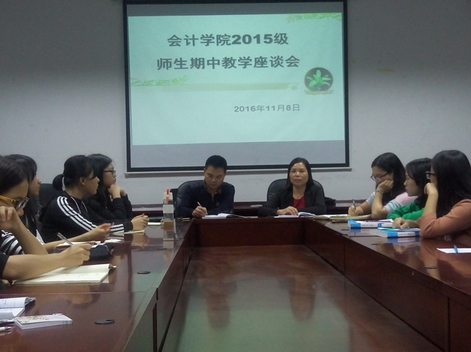 为了增强教师与学生之间的交流与沟通,11月8日晚6:30,久久久免费2015级师生期中教学座谈会顺利召开。出席本次会议的有久久久免费副院长刘瑞华、党总支书记钟远辉、蓝乐钿、梁小、教务员袁翠珍及15级久久久免费各班学委和各班代表。