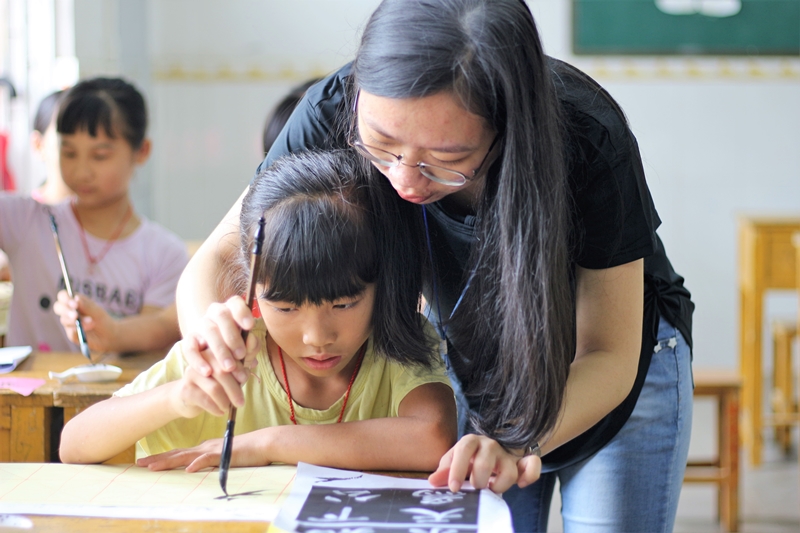 笃行班是五、六年级的学生,懂事乖巧的他们笃学敏思,谨慎言行。第一堂书法课上,同学们认真听讲,认真练习,从字里行间开始感悟人生道理。手语课上,同学们做的每一个动作都是爱你的形状,用无声的语言记录对你的无声告白,这是爱的温度,心的感恩。就像我们会梦启航服务队一样,心怀感恩,把爱带下乡!