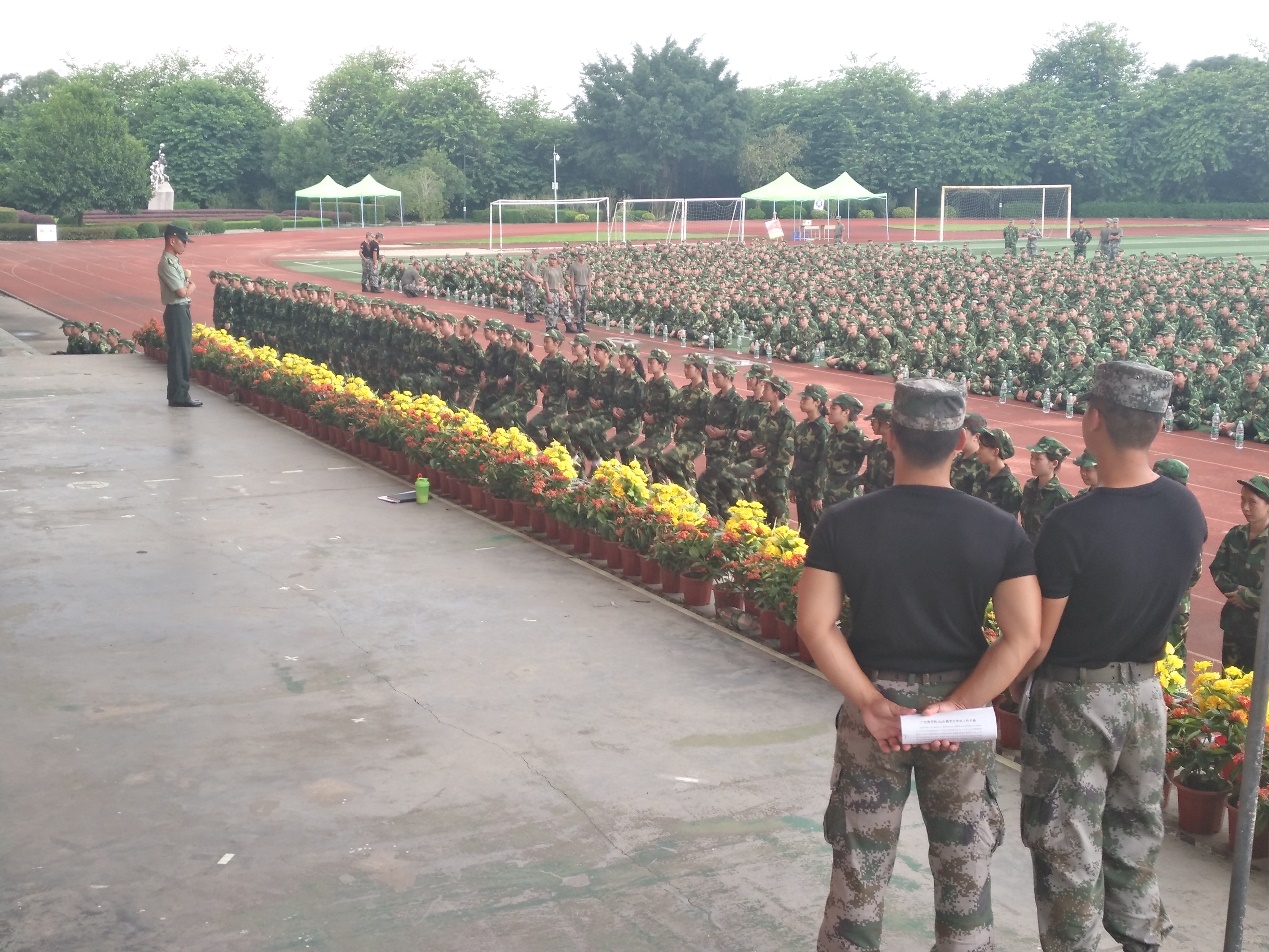 唱军歌环节,他们将每一句歌词都唱的铿锵有力,使歌声响彻在整个训练场的上空。随后,教官命令所有新兵带上饮用水在广商足球场集合,挑选出最有代表性,最令人骄傲的国旗班成员。教官从踏步、军姿站立、身高、视力等多方面高做要求,严格挑选国旗班的组成人员。经过层层挑选,最终成立了国旗班。